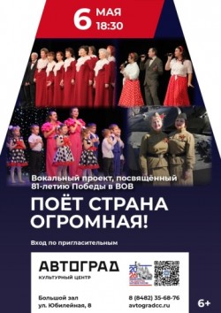 Вокальный проект, посвящённый 81-летию Победы в ВОВ. Концертная программа с участием Народной вокальной студии «Овация», Дуэта «T-2», Народного академического хора «Виват», Детской студии «Мечта», Центра сценического творческого развития «Креатив».