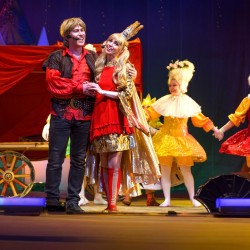 В сказочном королевстве появляются самые настоящие бродячие музыканты, необыкновенно талантливые. И, конечно же, прекрасная Принцесса влюбляется в Трубадура! Как счастливы были бы влюбленные, если бы не зависть и коварство Министра, наивность и доверчивость глупого Короля, жадность разбойников! Как несчастны были бы Принцесса и Трубадур, если бы верные друзья Пес, Кот, Петух и Осел не поспешили им на помощь. Сколько опасностей предстоит им преодолеть. Как много песен будет спето. Какой радостный день предстоит вам провести вместе с ребенком!